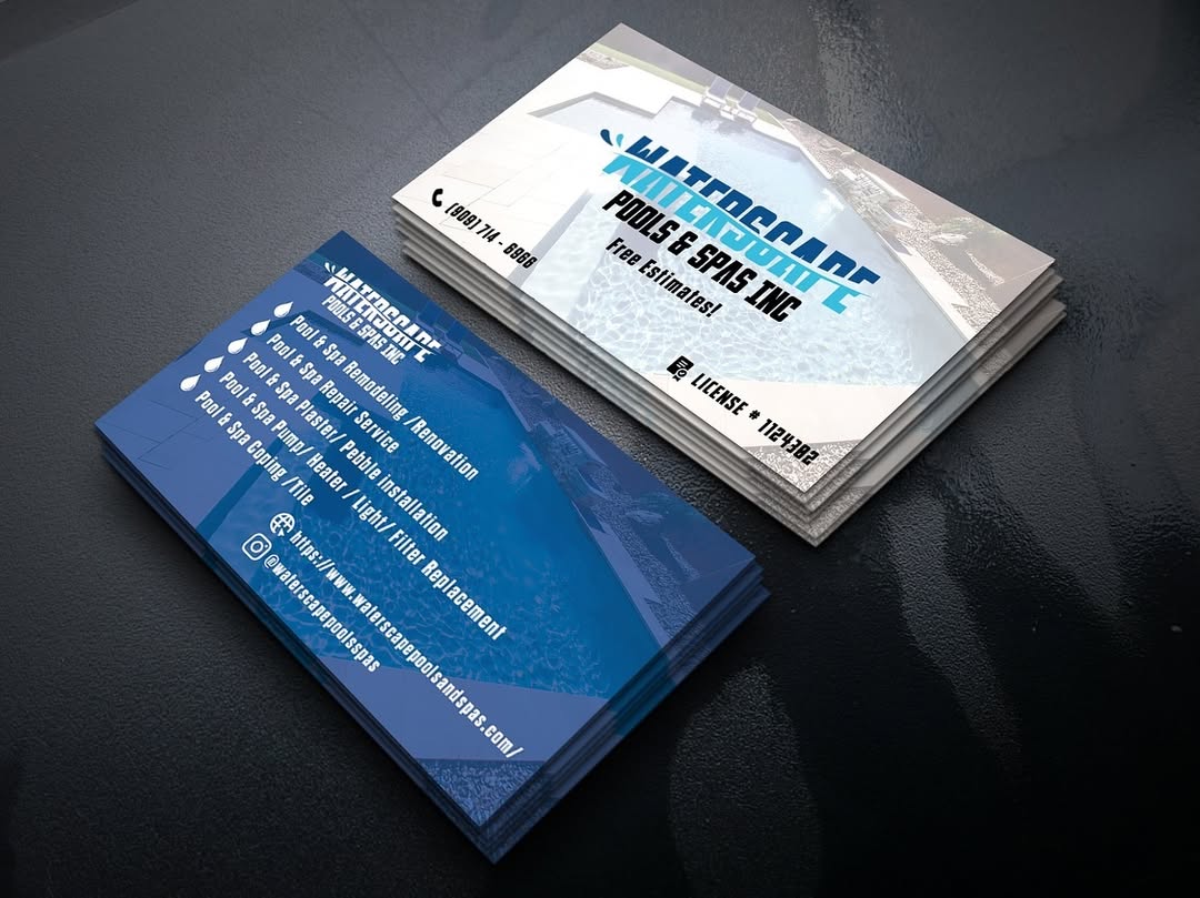 A professional business card design created for Waterscape Pools & Spas Inc, focusing on clarity, trust, and a clean aquatic aesthetic. The design features balanced typography, brand-aligned colors, and a polished layout, ensuring a strong first impression and a professional look that reflects the companyβs quality services.